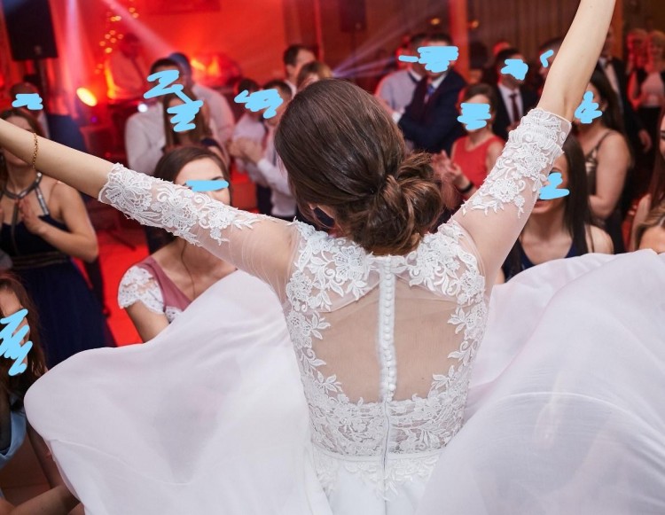 - dziura przy szwie na muślinie. Dlatego polecam tą sukienkę niższym dziewczynom, wtedy krawcowa będzie musiała dopasować koło do wzrostu i przytnie wzdłuż długości po szwie i „wciągnie” dziurę.