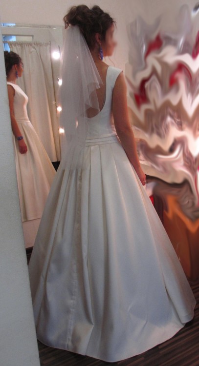 Sprzedaję z długim,ciągnącym się po ziemi welonem klasycznym (pewnie około 2,5 m) oraz na wymianę krótkim. Halkę wypożyczałam, dlatego sprzedaję bez halki/koła. Do dnia 28 lipca można przymierzyć z halką- później muszę ją oddać.
