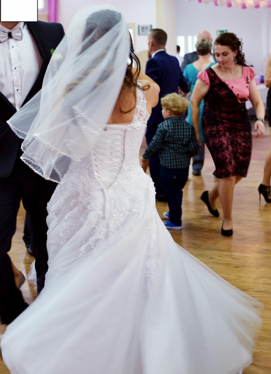 Na zdjęciach suknię założono bez koła, gdyż nie było mi potrzebne.