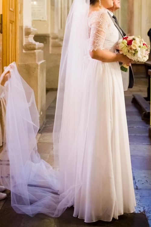 Dodaję jeszcze długi welon, który może zastąpić tren w kościele oraz krótki idealny do tańca podczas wesela.