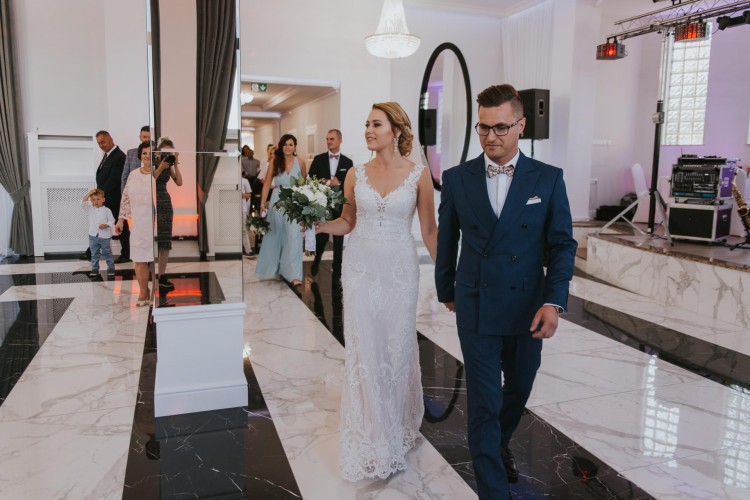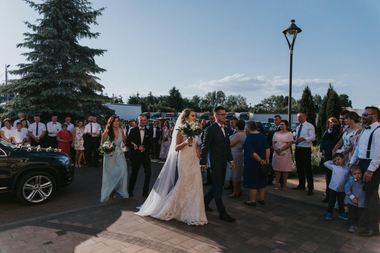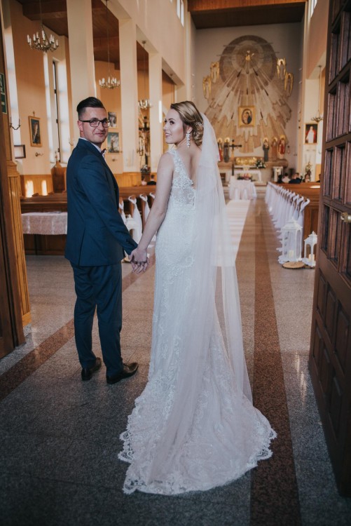 Suknia ślubna Artemia model z 2018 r. pochodzi od polskiego producenta Gala. Pokazały mi ją konsultantki w salonie ślubnym Madonna w Warszawie i zakochałam się w niej od pierwszego wejrzenia :) Suknia to typowy rozmiar 38, ja mam 169 cm wzrostu i miałam szpilki 10 cm na ślubie. Suknię bez problemu można skrócić lub nawet wydłużyć - ma trochę zapasu. Suknia jest wykonana z grubiej efektownej koronki w kolorze ecri ozdobiona koralikami i delikatnymi cekinkami; posiada tren, który podpina się na guziczek i 2 haftki po bokach. Suknia wywarła ogromne wrażenie na gościach. Jest po praniu chemicznym i jej stan oceniam na IDEALNY. Nie ma żadnej dziurki ani brakujących koralików. W cenie dodatkowo oddam długi welon z jedwabnego tiulu oraz ozdobę do włosów - nową (kupiłam 2 szt a wykorzystałam na swoim ślubie tyko 1) Serdecznie polecam i zapraszam do kontaktu osoby zainteresowane. Suknię można zobaczyć w Warszawie lub w Łukowie.
