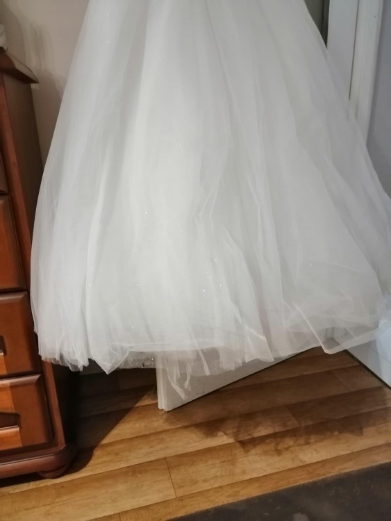 Suknia jest bardzo rozłożysta. W komplecie koło do sukni.