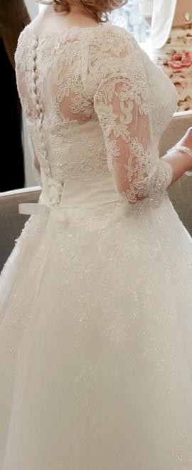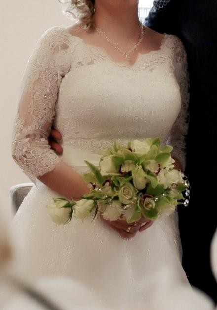 - stan idealny, nie wygląda na używaną, nie ma żadnych uszkodzeń, zakładana była tylko w dniu ślubu i noszona do północy, jest po profesjonalnym praniu