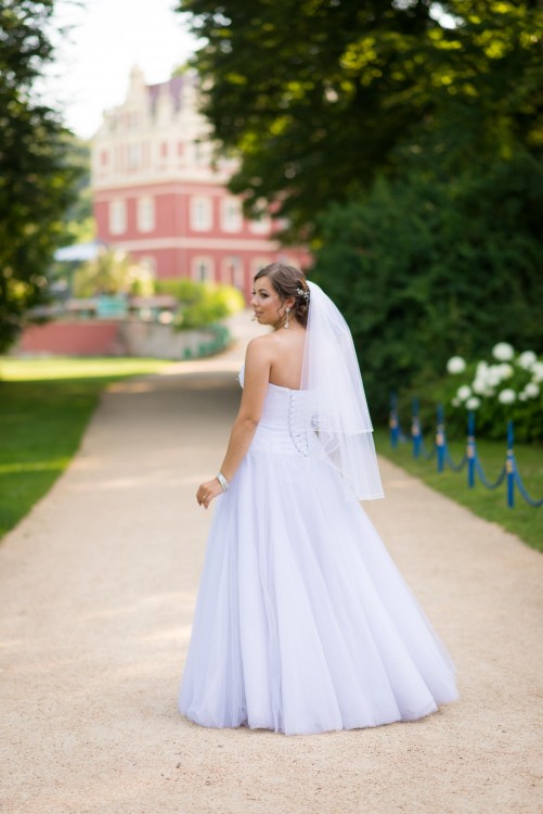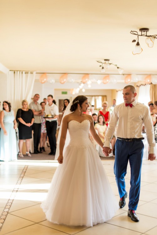 Zarówno ja, jak i mój mąż byliśmy zachwyceni suknią nie tylko pod względem wizualnym, ale też praktycznym. Suknia pięknie się prezentuje, ma wspaniałe zdobienia. Brak trenu powoduje, że jest ona zwiewna i wygodna. Przetańczyłam w niej całą lipcową noc (a wcale się nie oszczędzałam ;) ) i na koniec wesela nie było żadnych otarć, naciśnięć czy pęcherzy. Z przyjemnością włożyłam ją ponownie na sesję.