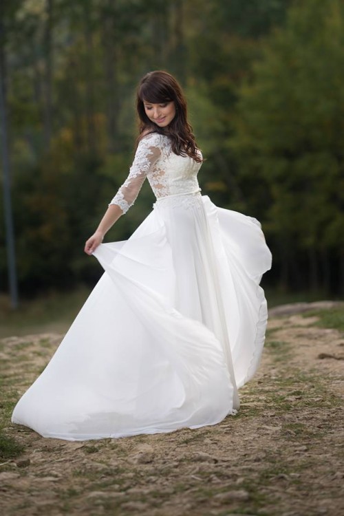 Sprzedam przepiękną muślinową suknię ślubną szytą na miarę w salonie Sposabella.