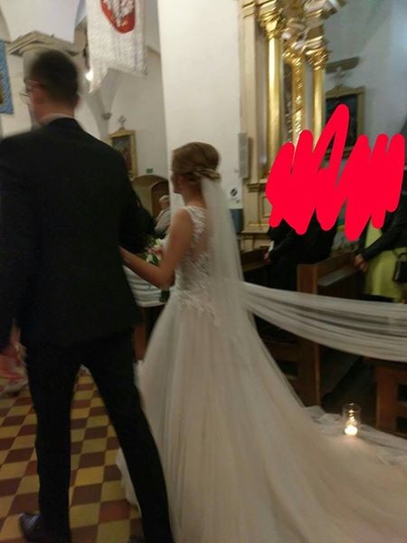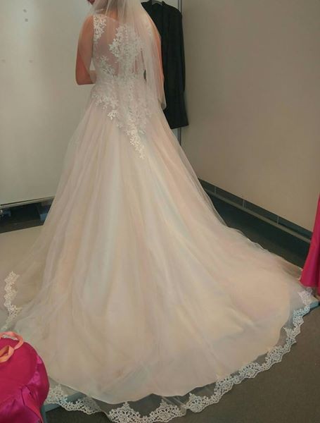 Mam na sprzedaż suknię ślubną Sposabella 1459 różową, uszytą na wzrost 168 cm + 8 cm obcas. Suknia jest bardzo efektowna dzięki długiemu trenowi :) W cenie dodaję kremowy welon (120 zł), etola (150 zł)oraz koło. Suknia jest wyprana.