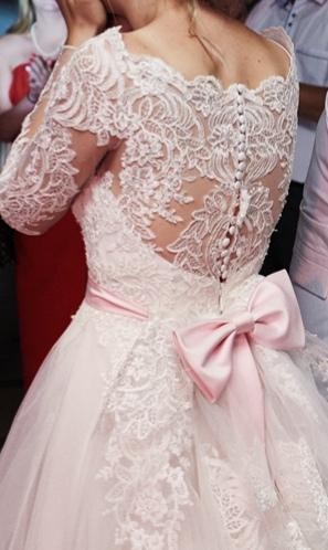 Sprzedam sukienke moich marzen. Dzielnie służyła. Tanczy sie w niej oblednie, pieknie sie uklada. Lekka, kobieca księżniczka. Rozmiar 36.piekny tren zapinany z tylu(mozna podciagnac do gory do tanca). Dorzucam 2 welony, jeden w kolorze sukienki a drugi w bieli (na oczepiny np do rzucania). Pierwsze zdj to ta sukienka katalogowa, ja ja lekko kazalam zmodyfikowac - byla zbyt bujna, jest wyciete czesc materialu z tylu. Dorzucam tez szarfę(rozowa kokarda) ze zdjec, mozna ja zalozyc lub nie. Kupiona za 160zl.u mnie gratis. U mnie sie marnuje sukienka juz, stad cena promocyjna.