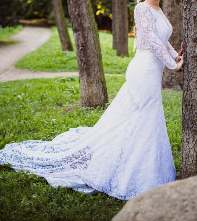 Mam do sprzedania niesamowitą suknie ślubną dla wymagających Panien Młodych. Suknia ślubna z głębokim wycięciem na plecach oraz długim trenem. Wykonana z efektownej koronki i wykończona kamieniami oraz koralikami co uzupełnia całość i nadaje jej blasku. Rozmiar 36, koronka dopasowuje się do ciała. Moja wysokość to 167 + szpilki od 7-10 cm.