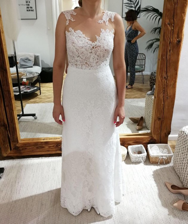 Sprzedam suknię Janette z kolekcji 2017 r. Jestem pierwszą właścicielką, suknia została kupiona w sierpniu w salonie autorskim w Krakowie. Posiadam umowę, paragon i oryginalny pokrowiec. Suknia została wyczyszczona w pralni Betty Clean polecanej w Annie Karze. Jedyny mankament to lekko popruta koronka na dole sukni, spokojnie do zszycia. Poza tym stan idealny. Ubrana tylko raz na ślub i krótką sesję tego dnia.