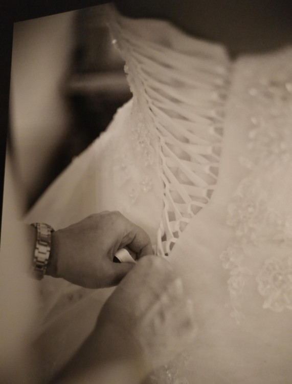 -Rozmiar 32 -amerykanskie ( suknia ściągana z USA) ale normalnie noszę polskie 36/38. Gorset wiązany zatem można dopasowć. Wkładka dopasowująca ma 15cm, a suknie jest sznurowana.