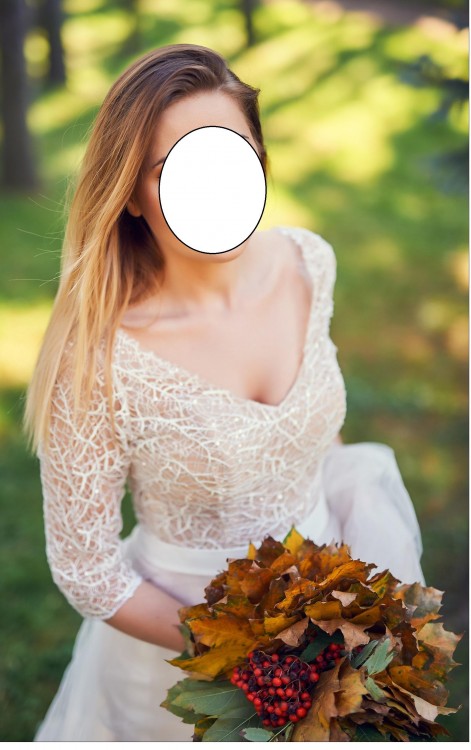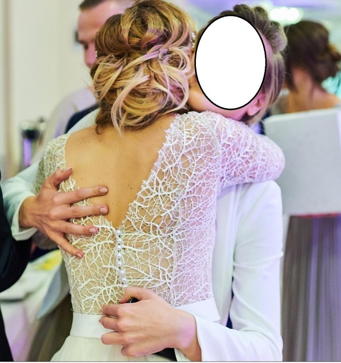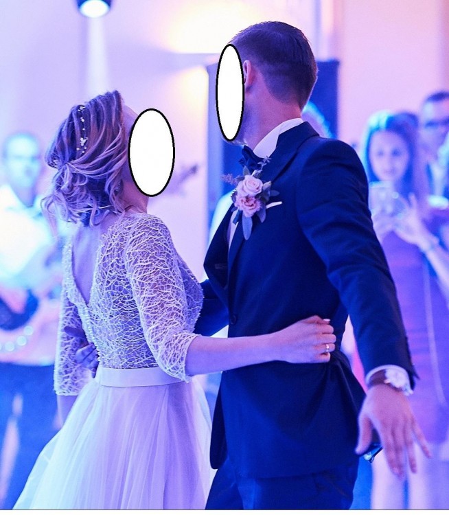 Góra koronkowa z bieliźnianym gorsetem, rękaw 3/4, dekolt "v" z przodu i z tyłu. Koronka się mieni dzięki przyszytym błyszczącym cekinom.