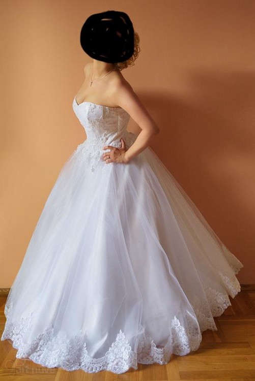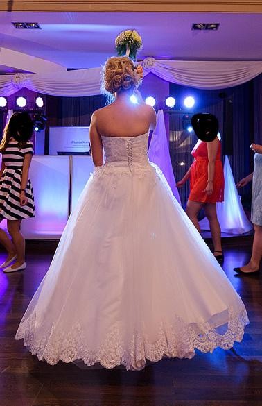 Do sprzedania mam swoja suknie slubna. Szyta na miare we wrzesniu 2016r. Rozmiar 36/38. 158cm wzrostu + obcas 5cm. Dokladne wymiary sukni moge podac w wiadomosci prywatnej. Suknia posiada wszyste, elastyczne kolo. Kronka na gorsecie i na dole sukni. Niestety koronka podczas wesela zostala rozdarta i pozniej juz sie tym nie zajomwalam, wiec bedzie potrzebna drobna przerobka u krawcowej. Dodatkowo do sukni dodaje buty, rzmiar 37.
