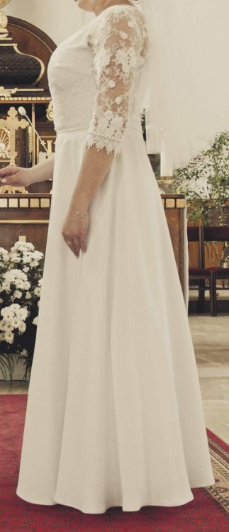 Suknia była szyta na miarę - rozmiar 38-40 na wzrost 160 cm+obcas ok 6cm.