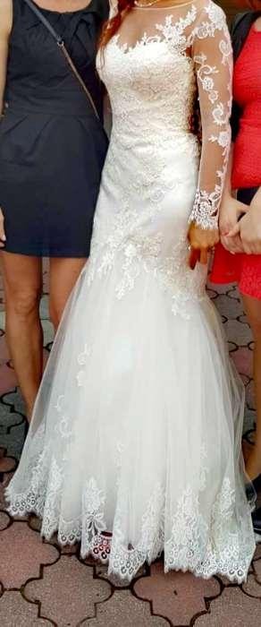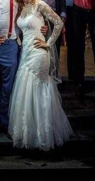 Sprzedam piękna suknię ślubną ,kolor ecru,koronkowa z trenem do podpięcia.