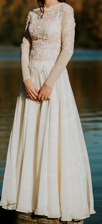 Sprzedam piękną suknię ślubną - rozmiar 34/36, kolor ecru. Suknia była uszyta na osobę o wzroście 1,60 + niewielki obcas 5-7 cm. Jest lejąca (swobodnie opadająca), bez koła. Góra wykonana z gipiury i delikatnej siateczki. Suknia jest lekka i wygodna. Polecam.