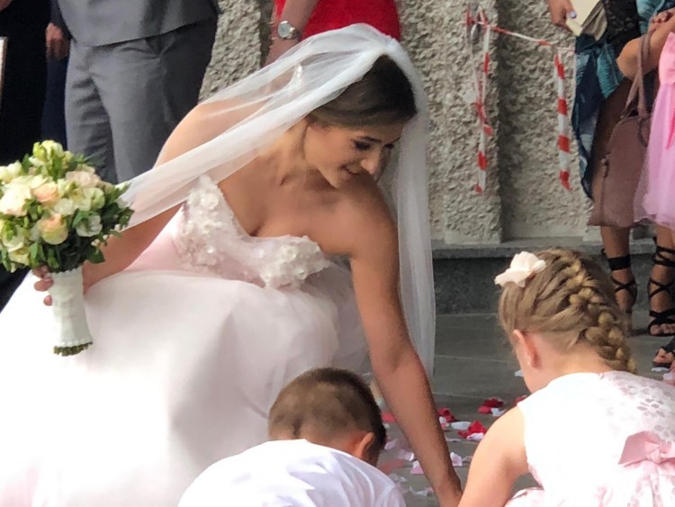 Z ogromnym żalem sprzedaję swoją suknie ślubną, w rozmiarze 36-38 (gorset wiązany więc będzie pasował również na większy rozmiar).