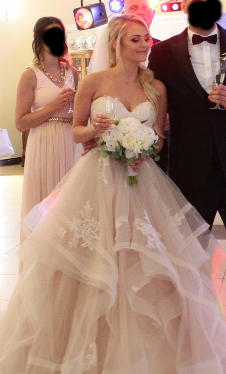 Sprzedam suknię ślubną Stella York w kolorze moscato / pudrowy róż w rozmiarze 36/38 , wzrost 168 + 8 cm obcas. Suknia uszyta jest z wysokiej jakości materiałów, posiada tren podczepiany na guziczki. Suknia jest bardzo wygodna i lekka. Dodatkowo dołączam 3,5 metrowy gładki welon w kolorze ecru. Suknia założona w dniu ślubu i na sesję plenerową. Profesjonalnie wyczyszczona w pralni. Cena z welonem 2950 zł. (cena do negocacji)