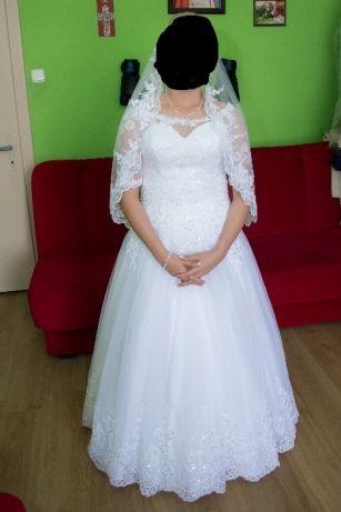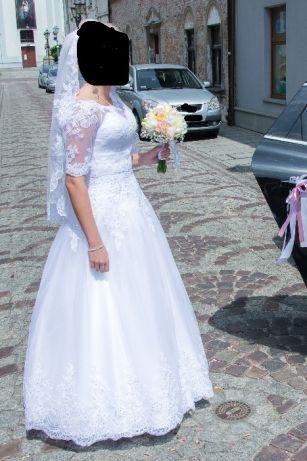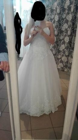 Sprzedam suknię ślubną zakupiona tego roku w salonie sukien ślubnych "Izabela" w Skoczowie. Suknia jest w stanie bardzo dobrym, wyprana w pralni, założona dwukrotnie- raz na czas ślubu, drugi raz na czas sesji. Suknia jest w kolorze śnieżnobiałym, posiada gorset, więc jest możliwość regulacji rozmiaru ;) Gorset sukni oraz jej dół jest wyszywany ozdobną koronką. W cenie uwzględniam welon oraz bolerko ;) Możliwość przymiarki po wcześniejszym umówieniu się pod nr telefonu : 575 860 405.