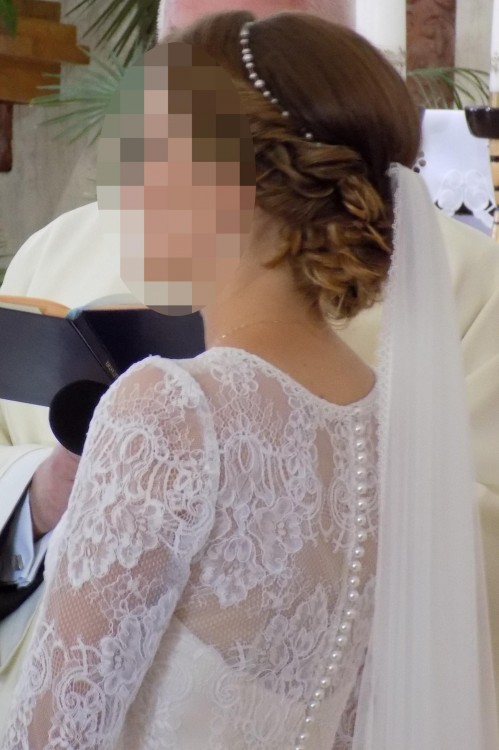 Do sukni dołączam krótki i długi welon oraz ozdobę do włosów (wianek z perełkami).