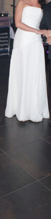 Sprzedam śliczną suknię ślubną PRONOVIAS model FABULA zakupioną w salonie Flossman we Wroclawiu. Rozmiar 36/38 długość na 170cm plus 8cm obcas. Możliwość skrócenia. Suknia z delikatnego muślinu, zwiewna i dobrze sie uklada. Stan sukni idealny.Suknia zostala wyprana w profesjonalnej pralni. Na wszelkie pytania chętnie odpowiem. Polecam!( do sukni dodaje bolerko z futerka w kolorze ecri GRATIS)