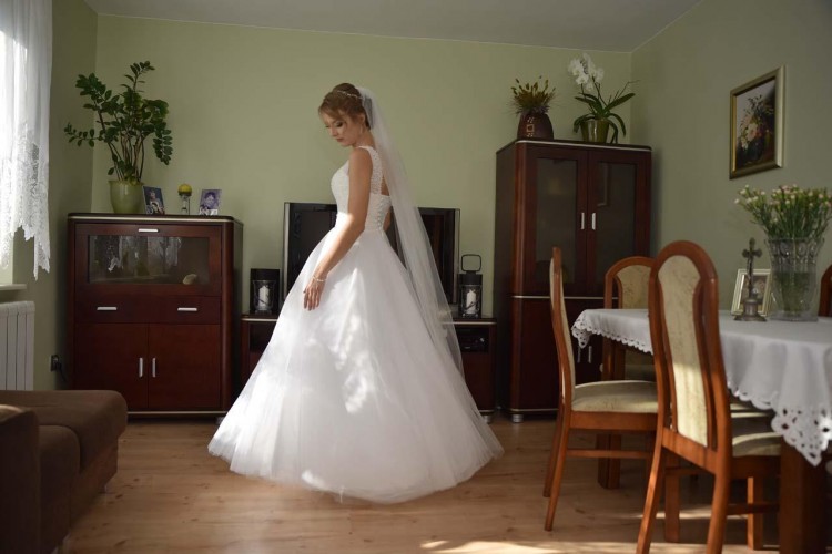 Suknia jest lekka i zwiewna dzięki tiulom, nie posiada koła.