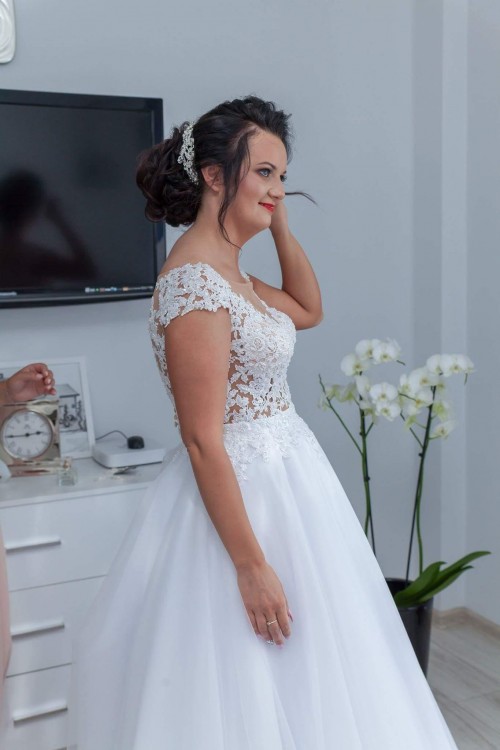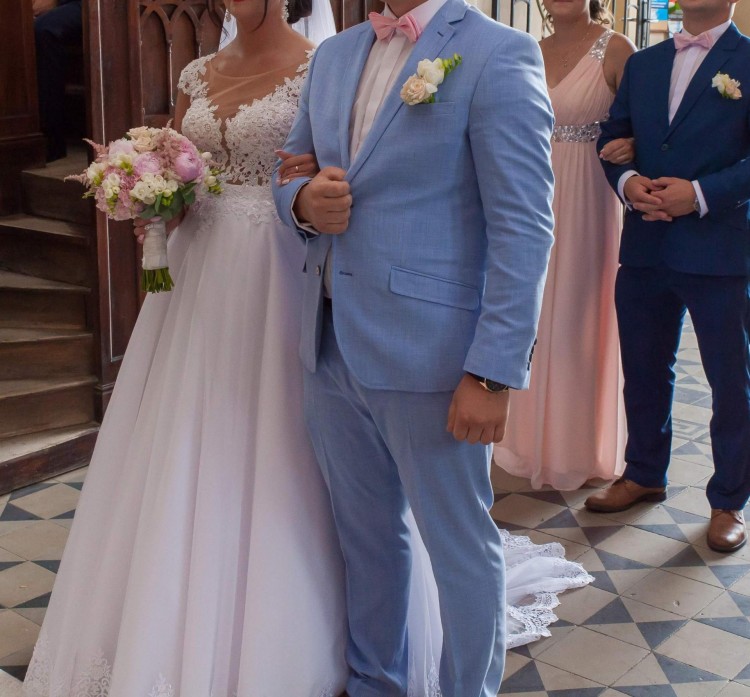 Witam. Posiadam na sprzedaż suknię slubna księżniczkę założona tylko jeden raz w lipcu 2018. Stan bardzo dobry bez żadnych uszkodzeń. Suknia jest po kompleksowym praniu. Góra wykończona jest z mieniacych się z koronki kryształków zatem dol wykończony jest haftowana koronką. Suknia posiada także tren.