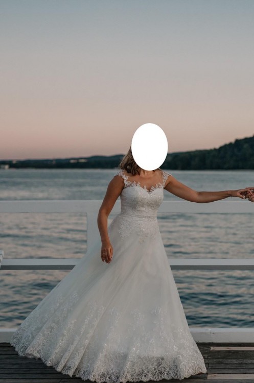 Sprzedam suknię ślubną model E- 3604 zakupioną w salonie Elizabeth Passion w Gdyni. Suknia w bardzo dobrym stanie, po czyszczeniu chemicznym. Suknia szyta na 172 cm wzrostu+ 9cm obcas (jest możliwość skrócenia). Do sukni dodano pasek z kryształków na talii oraz warstwę brokatowego tiulu pod zewnętrzną warstwą tiulu z koronką. Koronka posiada odrobinę cekinów, które dają zachwycający efekt w świetle słońca. Do sukni dodam halkę z kołem. Możliwość zobaczenia sukni w Gdańsku i w Pile. Więcej zdjęć na priv.