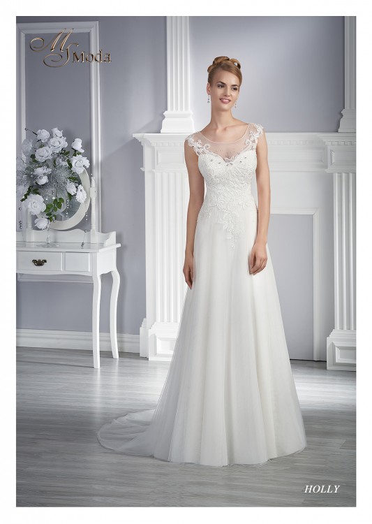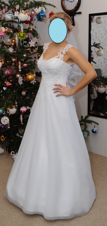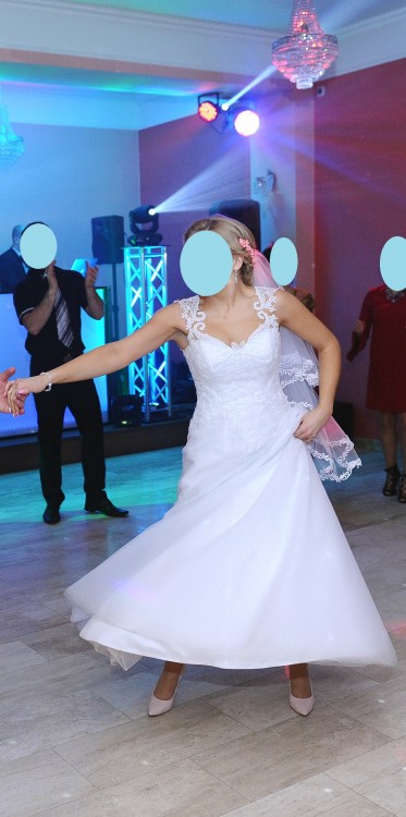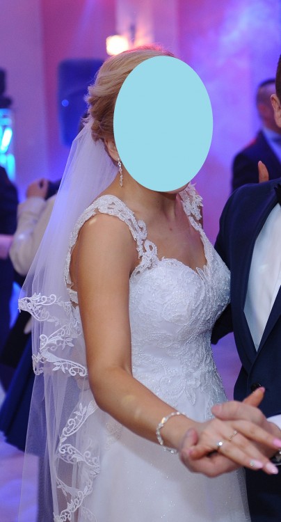 Mam na sprzedaż piękną,białą suknię ślubną Holly kupioną w Salonie Sukien Ślubnych MS Moda w Kielcach z kolekcji 2016, kształt litery A. Przedstawiony model jest niezwykle wygodny i podkreśla atuty sylwetki, wykonana z dbałością o detale, wykończona przepiękną koronką. Dwie warstwy tiulu w tym jedna delikatnie obsypana jasnym brokatem, piękne wyeksponowane plecy, koronkowy gorset – wszystko tworzy lekką, romantyczną, ale oryginalną całość. Koronkowe ramiączka są umieszczone na CIELISTYM tiulu który jest dosłownie niewidoczny po założeniu sukni co daje przepiękny efekt! Jest bardzo wygodna i lekka. Dodam jeszcze, że suknia wzbudziła w dniu ślubu wielkie poruszenie i zachwyt a do tego zebrała wiele komplementów :) Teraz czeka na nową właścicielkę :)