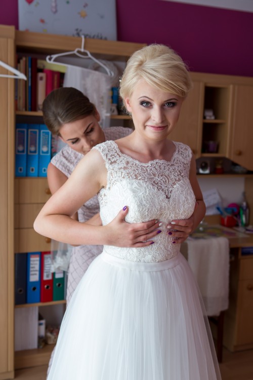 Mam do sprzedania suknię ślubną w kolorze śmietankowym.