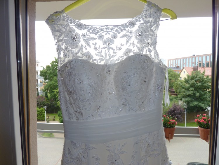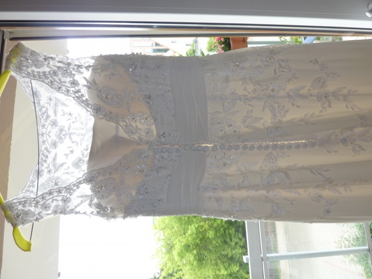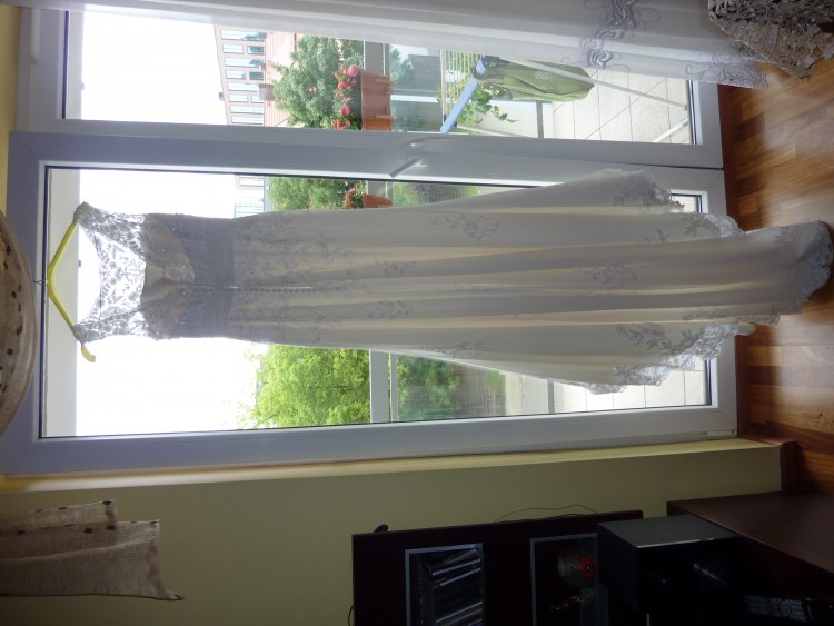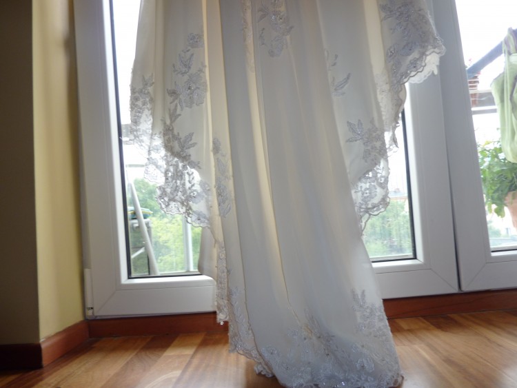 Suknia była skracana na wzrost 165 + ok.7cm obcasy, nieznacznie zwężana w talii.