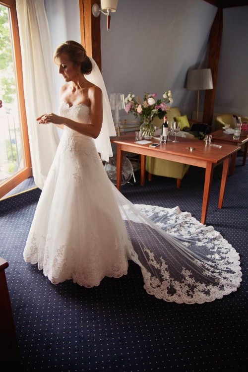 Sprzedam suknię ślubną z kolekcji Amy Love Bridal, model: Lavare (link do strony: http://amylovebridal.pl/pl/kolekcja/2017/amy-love-bridal/lavare) w cenie 1.900 zł. Rok nabycia 2018. Sukienka nie jest w ogóle uszkodzona - w nieskazitelnym stanie oraz po profesjonalnym czyszczeniu w salonie Amy Love Bridal w Poznaniu. Jest w kolorze śmietankowym, pięknie podkreślającym opaleniznę i ocieplająca kolor skóry. Górę sukni stanowi delikatny gorset wyszyty ozdobnymi kryształkami, doskonaly podkreślający talię. Dół sukni opatrzony jest hiszpańską koronką i usztywniony kołem. Z pewnością spektakularny jest tren sukienki, również opatrzony hiszpańską koronką, który w trakcie przyjęcia weselnego można podpiąć do sukienki (tworzy tym samym jednolitą całość z sukienką, stanowi dodatkową warstwę dołu). Sukienka jest wyjątkowo lekka i bardzo wygodna w noszeniu, tym samym w żaden sposób nie krępuje ruchów, a raczej ,,tańczy", co wygląda bardzo efektownie.Cena sukienki w salonie to 3.290 zł. Rozmiar sukienki to S, wymiary: obwód w biuście 89, obwód w talii ok. 65-67, obwód w biodrach ok. 89-90, na wzrost 168. Osoby zainteresowane proszę o kontakt, również pod adresem aleksandrag@onet.eu