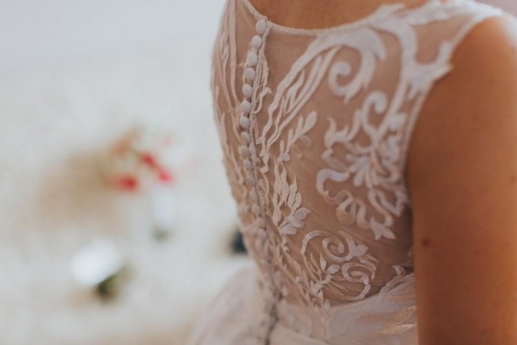 Suknia kupiona w sierpniu 2017. Wykonana z tkaniny Mikado, kolor ivory, na plecach koronka. Długość do ziemi 160 cm + obcas 7