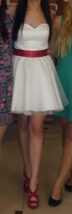- krótka sukienka na zmianę lub na poprawiny (czerwona wstążka widoczna na załączonym zdjęciu nie jest zamocowana na stałe)