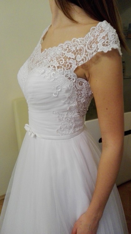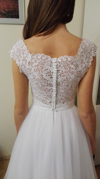 Suknia ślubna byłą szyta według własnego projektu w salonie ślubnym Magia w Gdowie. W sukience jest możliwość dołożenia koła (drutu). Na zdjęciach z wesela i pleneru suknia jest z kołem.