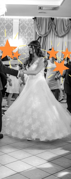 Dzięki przeplatającym się warstwom tiul - tiul z koronką - tiul przepięknie układa się w tańcu.