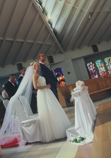 Sprzedam suknię ślubną zakupioną w salonie (model FAMOSA). Rozmier 36- wzrost 160cm + 14 cm obcas. Suknia w kolorze naturalnej bieli. Składa się głównie z bardzo delikatnego tiulu. W pasie ozdobne kryształki. Zapinana na zamek. Orientowałam się i można ją przerobić na wiązanie. Suknia nie posiada żadnych uszczerbków takich jak dziury lub podarcia. W komplecie 2 welony(długi i krótki) oba z grzebykiem. Zakupiona w salonie. Założona 2 razy (ślub + sesja). Cena DO NEGOCJACJI