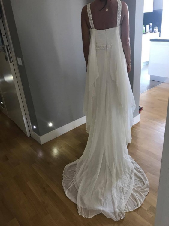 Suknia jest z delikatnym trenem, który można podpiąć.