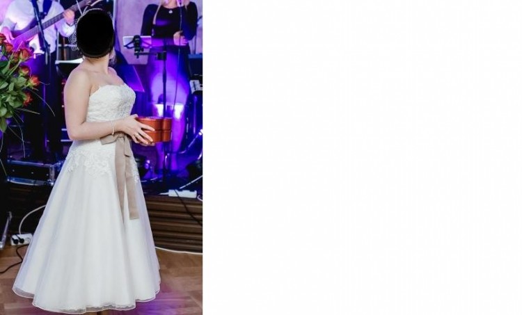 Rozmiar sukni 36/38, na wzrost ok 160 cm.