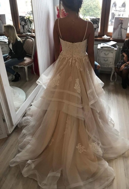 Sprzedam przepiękną suknię ślubną Stella York 6432. Rozmiar sukni 36. Obwód w biuście 83, obwód w tali 66, obwód w biodrach 85, wzrost 169 + 8 cm obcas. Istnieje możliwość zmniejszenia sukni (dopasowanie gorsetu) oraz skrócenia. Suknia w kolorze moscato.