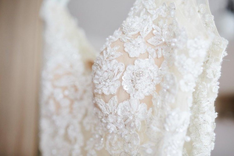 Suknia posiada 5 warstw tiulu, jedna w kolorze cream white. Zmiana w stosunku do salonowego modelu to zakrycie wolnych przestrzeni na brzuchu.