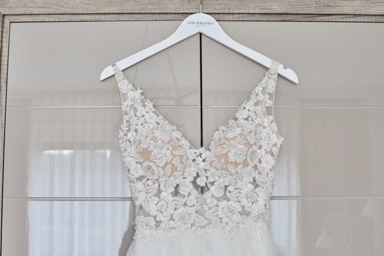 Sprzedam suknię ślubną Tom Sebastien ZAFIRA w rozmiarze 32/34, długość 164 cm + 9 cm szpilki.