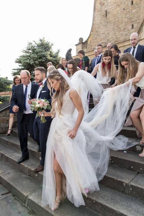 Sprzedam przepiękną suknię ślubną z kolekcji Sylwii Kopczyńskiej, model SUN, kupiona w salonie w Warszawie w czerwcu 2018r. Suknia uszyta na miarę, rozm. 34/36, wzrost 166 cm + 8 cm obcas. Głęboki dekolt na plecach optycznie wydłużający plecy i zwężający talię. Rozcięcie umożliwia swobodne poruszanie. Suknia pięknie się układa, jest komfortowa w noszeniu przez wiele godzin. Ja się w niej zakochałam i czułam wyjątkowo przez całą noc. Suknia jest w bardzo dobrym stanie. Po czyszczeniu chemicznym. Cena sukni w salonie to 5800 zł. Zapraszam do kontaktu!
