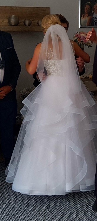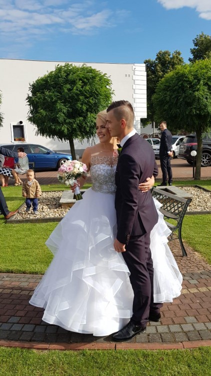 Witam, Do sprzedania mam WYJĄTKOWĄ,NIEPOWTARZALNĄ I JEDYNĄ W SWOIM RODZAJU SUKNIĘ ŚLUBNĄ. Suknia zakupiona w salonie sukien ślubnych w Katowicach ,kolekcja 2018 MUST HAVE tego sezonu.Suknia jest regulowana także pasuje od rozmiaru 36-40. Kupiona na 167 cm plus 8.5cm obcas. Kolor sukni:BIAŁY. Gorset bogato zdobiony z kamyczków,perełek i kryształkow.Suknia niesamowicie wygodna i lekka.W tańcu nie przeszkadza co najważniejsze podczas zabawy ,posiada wszyte koło. Po dokładne wymiary oraz wiecej informacji zapraszam priv. Cena do negocjacji