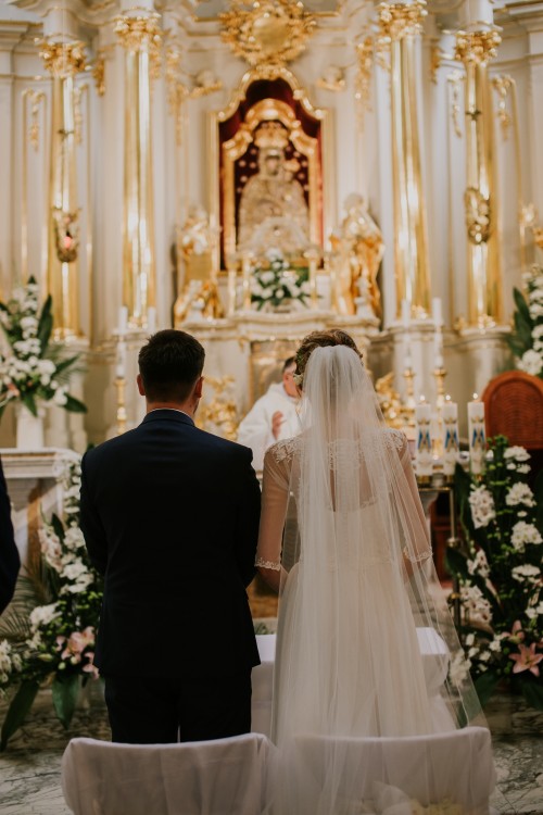 Sprzedam skromną, subtelną, a zarazem zjawiskową suknie ślubną, szytą według własnego projektu w renomowanym salonie sukni ślubnych Estella w Lublinie. Kolor ivory( śmietanka), rozmiar 34 – 36, na wzrost 172 – 173 plus 6 cm obcas. Dół sukni wykonany z wysokiej jakości muślinu, który nie ulega mięciu, jest bardzo lekki i zwiewny, natomiast góra sukni wykonana jest z koronki hiszpańskiej (niezdobionej cekinami), która została precyzyjnie naszyta na elastyczną siateczkę w kolorze sukni. Suknia jest zapinana na zamek i guziczki wykonane z matowego materiału. Suknia jest bardzo lekka i zwiewna, dlatego też podczas całej uroczystości ślubu i wesela czułam się w niej znakomicie. Suknia po sesji ślubnej została od razu oddana do pralni chemicznej w celu profesjonalnego czyszczenia. Stan sukni oceniam na idealny, ponieważ nie posiada żadnych uszkodzeń w postaci: zaciągnięć, plam czy naderwań. W razie jakich kol wiek pytań zapraszam do kontaktu pod numerem telefonu: 723 – 506 – 326.