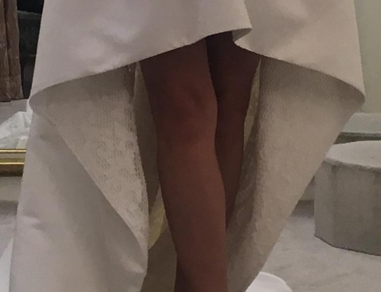 Stan bardzo dobry, użyta tylko na weselu. Rozmiar 36/38 na wzrost 162 cm plus 10 cm na szpilki.