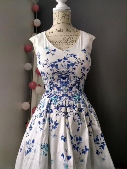 Kolor: Biały z niebiesko-turkusowym kwiatowym wzorem