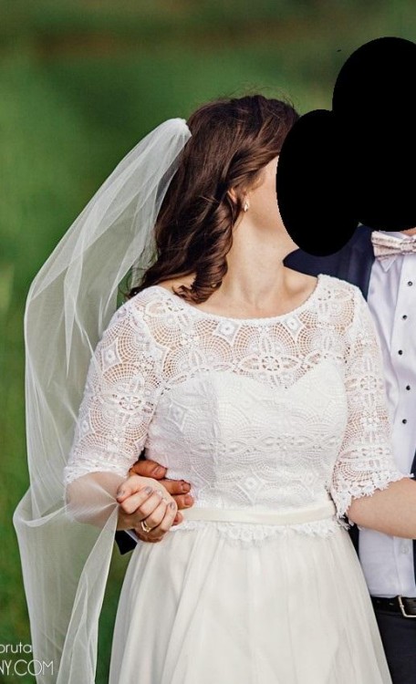 Do sukni dodaję gratis długi welon- długość welonu na długość sukni - widoczny na zdjęciu.