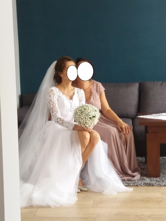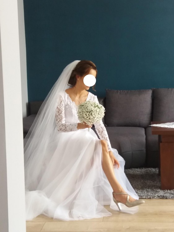 Zjawiskowa sukienka z długim rękawem i esami floresami. Sukienka szyta w salonie ślubnym według projektu z internetu z niewielką zmianą, a mianowicie zakryciem dekoltu. Sukienka przygotowana na wzrost 172cm + 8cm obcas (oczywiście istnieje możliwość skrócenia sukni). Suknia w rozmiarze 34/36 z gorsetem, na którym mieszczą się "esy floresy" dodające sukni charakteru. Długi rękaw dodający szyku i elegancji wspaniale prezentuje się na fotografiach, czy filmie ślubnym ( mogę podać link na yt do filmiku, aby w pełni podziwiać uroki sukienki). na lewej nodze rozporek, który dodaje smaku. Cała sukienka prezentuje się wyjątkowo. Zapraszam do przymiarek, a także proszę pytać w razie wątpliwości. Dla chętnych więcej zdjęć i informacji :) Wartość sukienki 4200zł