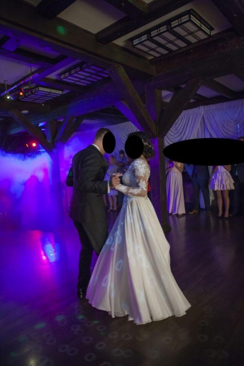 Suknia jest bardzo lekka i zwiewna, nie krępuje ruchów. Dzięki rozcięciu z przodu przepięknie układa się podczas tańca. Posiada wszyte miseczki push-up dzięki czemu nie wymaga założenia biustonosza.