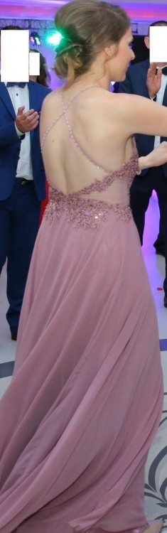Wbudowany stanik. Zapasowe koraliki do ramiączek. Pięknie układa się w tańcu.